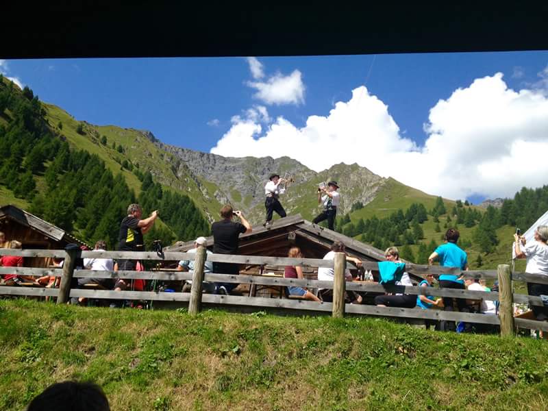 Die Schmirner - immer wieder gern gesehene Musikanten bei Berg- und Gipfelmessen. Dieses Foto entstand in der Schlick 2000 (hier mit 2 "Halbschmirner" Aushilfen ).