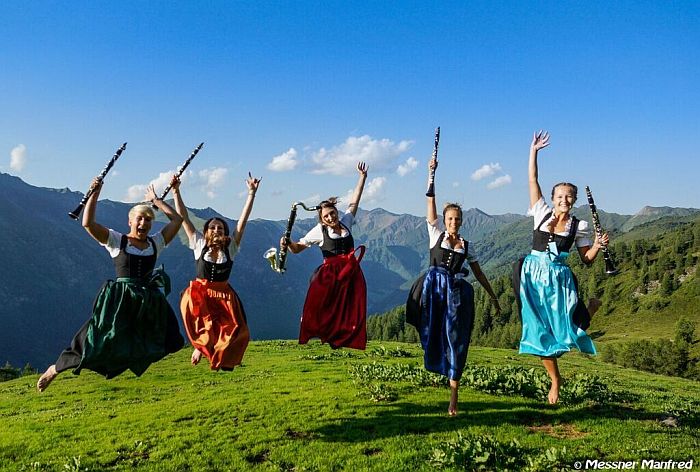 Abwechselnd mit gemischtem Chor, Dreigesang, Orgel und der Blechbläsergruppe gestalten die "Hoassen Helza" der Musikkapelle den Sonn- und Feiertagsgottesdienst in der Pfarrkirche Schmirn. Die fünf Musikantinnen sind aber auch sonst bei diversen Veranstaltungen und Feierlichkeiten anzutreffen.
